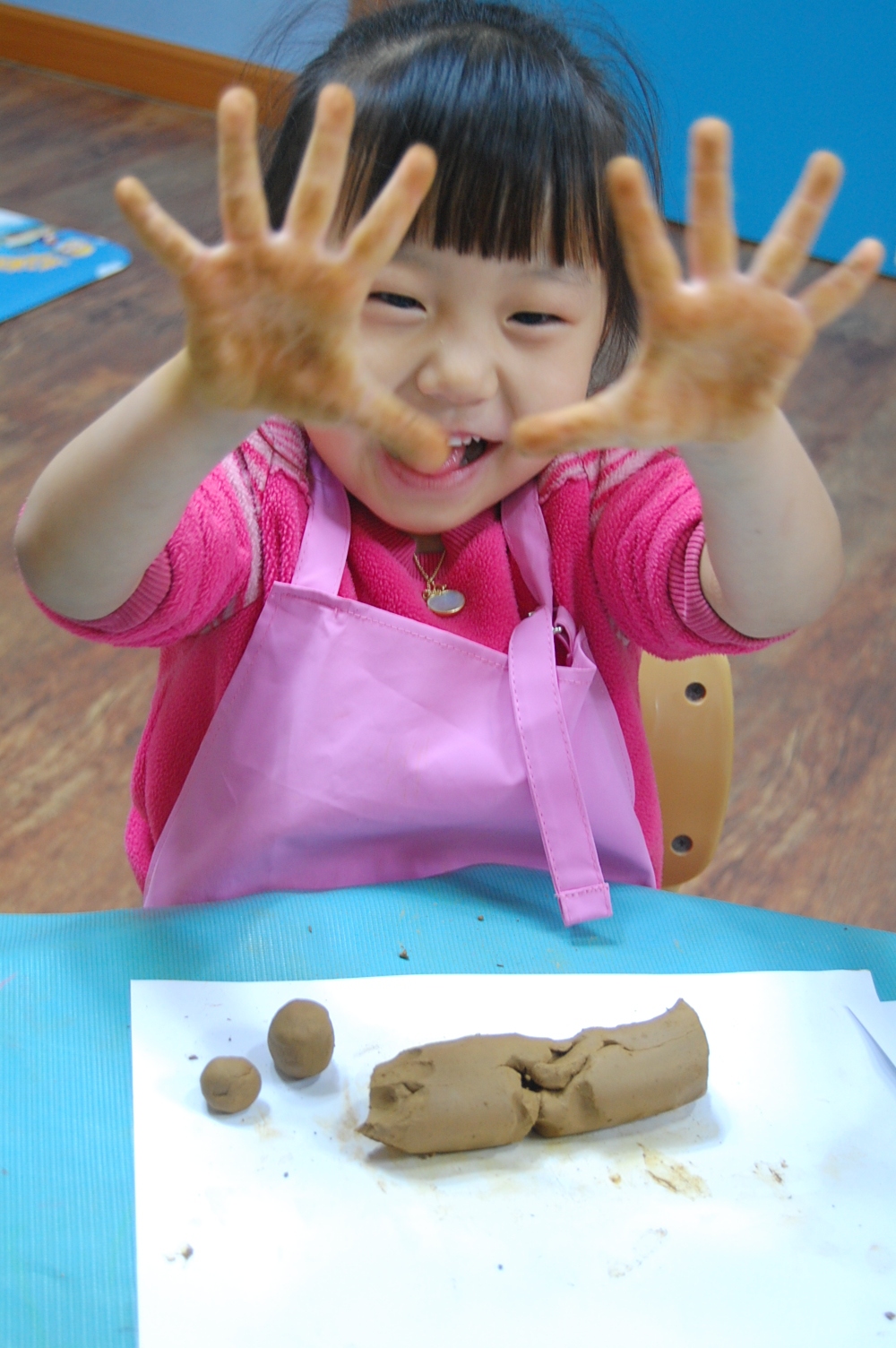 파란색 손바닥이 됐어요>.<