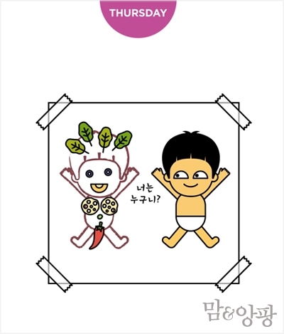 전지와 물감, 채소를 준비한다. 전지에 아이를 눕히고 물감으로 아이의 몸을 그린 뒤 채소를 이용해 머리카락, 눈, 코, 입, 배꼽 등을 꾸민다.