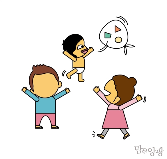 비닐봉지에 세모·동그라미·네모 등의 모양으로 자른 색종이를 테이프로 붙 인다. 비닐봉지에 바람을 불어넣고 손잡이를 묶어 풍선처럼 만든다. 가족 모두가 둥글게 선 뒤 비닐풍선이 바닥에 떨어지지 않도록 번갈아가며 손으로 밀어 올린다.