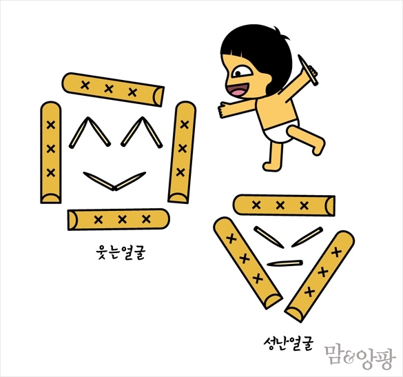 ★ 웃는 얼굴, 화난 얼굴, 슬픈 얼굴 등 다양한 표정을 만들며 감정을 배울 수 있다. 놀이를 하며 ‘성난 얼굴, 찡그린 얼굴, 싫어요!’ 노래를 부르는 것도 재미있다.