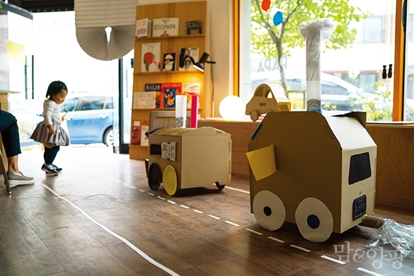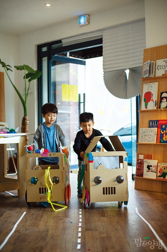 경기도 파주의 작은 스튜디오에서 여섯 살 동갑내기 친구가 만났다. 순형이와 규현이가 ‘파파워크룸’의 커다란 책상에 자리를 잡자 선생님이 지도 한 장을 펼쳤다. 알록달록 예쁘게 색칠된 <아이와 꼭 타봐야 할 우리나라>(리틀홈) 지도에는 서울시티투어버스, 춘천 중도 물레길 카누, 하늘목장 트랙터마차, 삼척 해양 레일바이크, 군산 인력거, 한려수도조망 케이블카 등 우리나라 곳곳에서 탈 수 있는 것들이 가득했다. “오늘은 내가 타고 싶은 자동차를 만들어볼까요?” 라는 선생님의 말과 함께 ‘나만의 판타스틱 자동차 만들기’ 워크숍이 시작됐다.